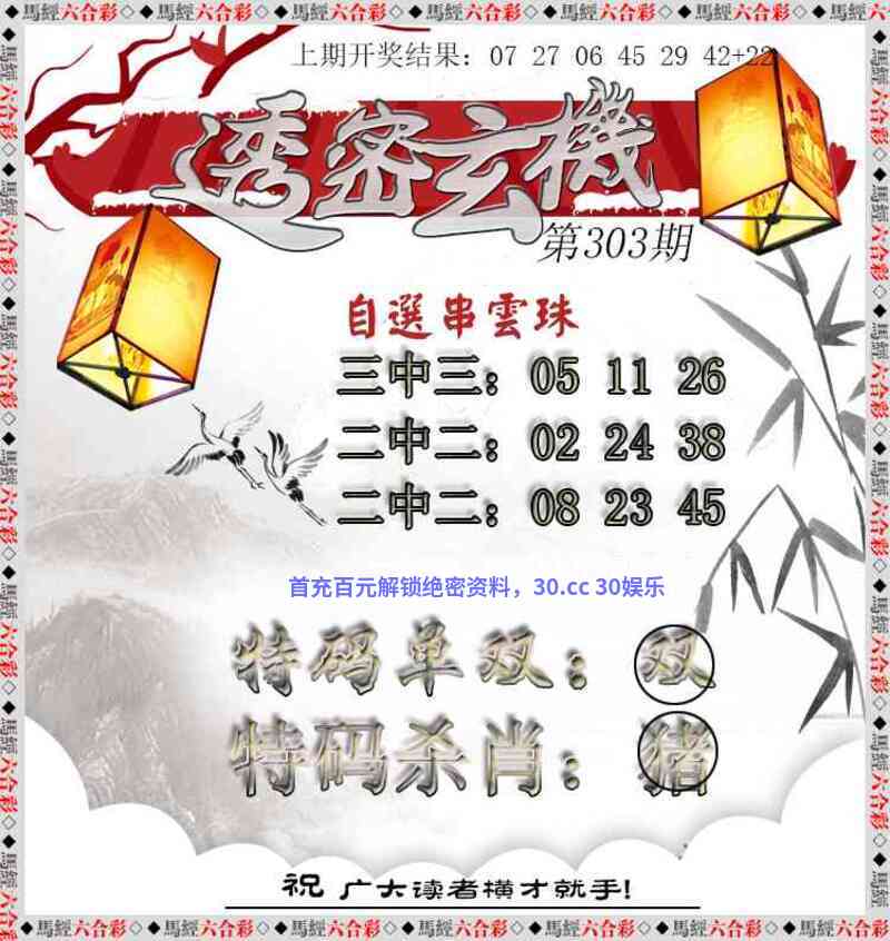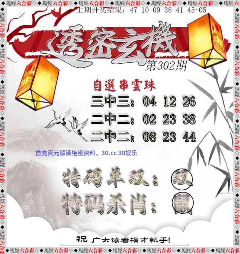 | 305期:⑧码 | 32.44.18.30.19.31.02.26 | 開:發00 |